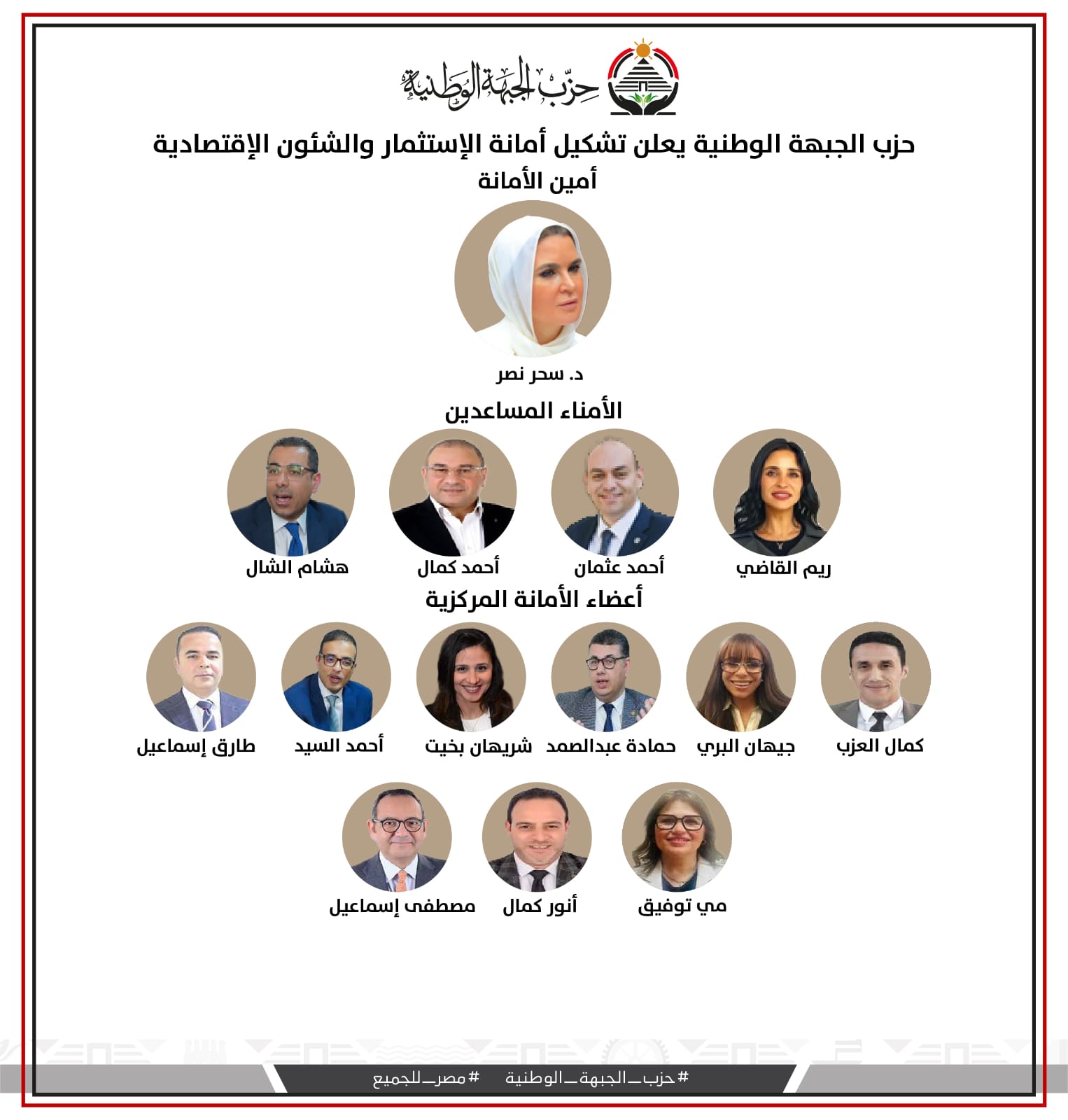 حزب الجبهة الوطنية يعلن تشكيل أمانة الاستثمار والشؤون الاقتصادية برئاسة د. سحر نصر