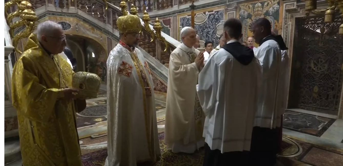 وتم انتخاب الكاردينال روبرت بريفوست (69 عاما)، المولود في شيكاغو، لخلافة البابا الراحل فرانسيس في وقت سابق من هذا الشهر. ووصل البابا إلى ساحة القديس بطرس على متن سيارة بابوية وقضي بعض الوقت في تحية الحشود. وبعد ذلك دخل البابا برفقة موكب من الكرادلة إلى كنيسة القديس بطرس، حيث يتلقى هديتين ترمزان إلى البابوية. وهو خاتم صياد ذهبي مُختوم، سُمي تكريمًا للقديس بطرس، الصياد الذي كان أول بابا.