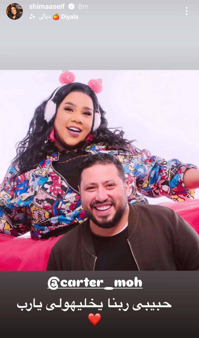 إذ نشرت شيماء سيف صورة لها رفقة زوجها من خلال خاصية استوري رصدها موقع تحيا مصر، وعلقت عليها وكتبت: "حبيبي ربنا يخليهولي يارب"، ليرد عليها: قمري.