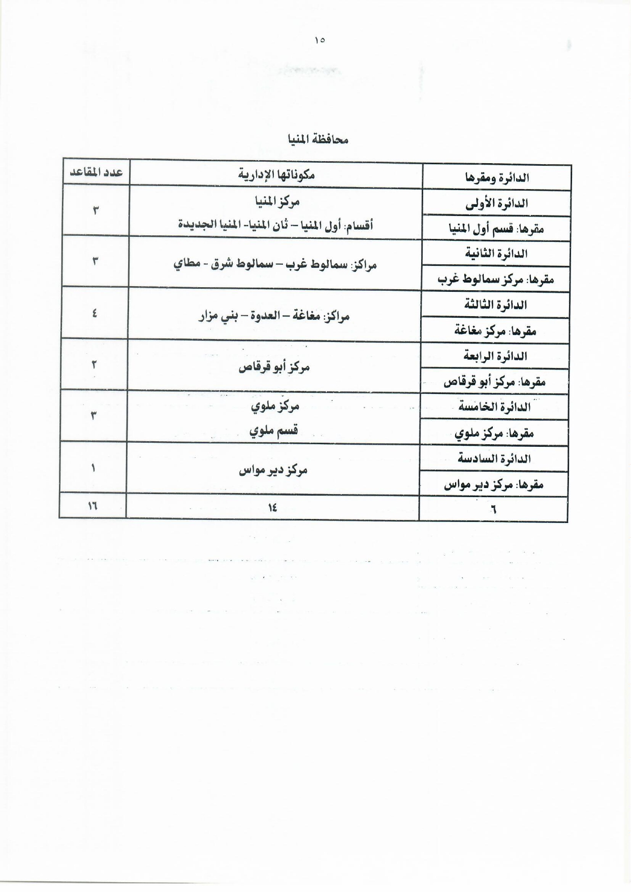 تُقسم جمهورية مصر العربية إلى عدد من الدوائر تخصص للانتخاب بالنظام الفردي، وعدد (4) دوائر تخصص للانتخاب بنظام القائمة، يُخصص لدائرتين منها عدد (٤٠) مقعداً لكل دائرة منهما، ويخصص للدائرتين الأخريين عدد (102) من المقاعد لكل دائرة منهما، ويحدد قانون خاص نطاق ومكونات كل دائرة انتخابية وعدد المقاعد المخصصة لها، ولكل محافظة.