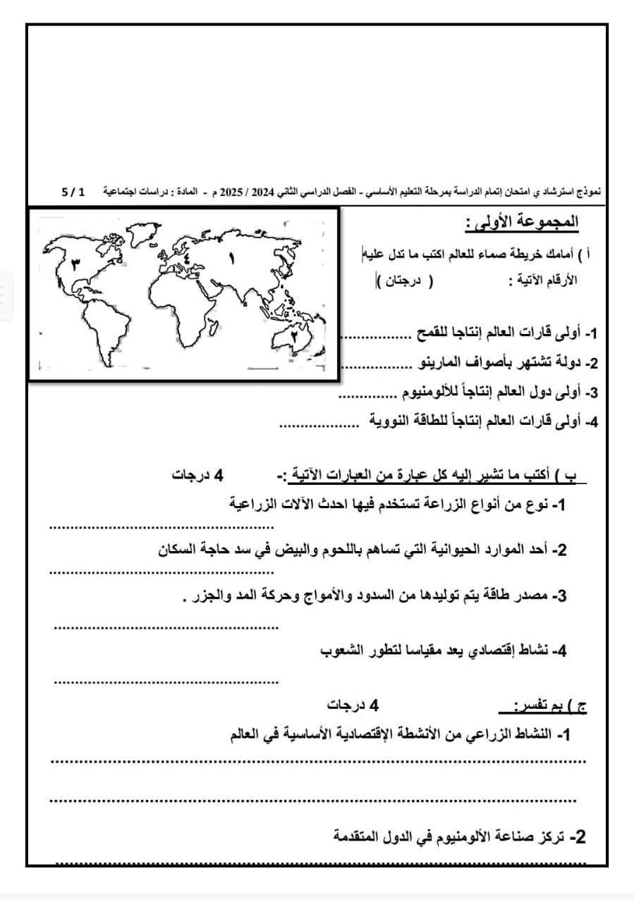 فى مادة الدراسات الاجتماعية للفصل الدراسي الثاني لعام ٢٠٢٥/٢٠٢٤ ومن المتوقع أن تأتى من هذه الأسئلة فى الامتحان وهى: