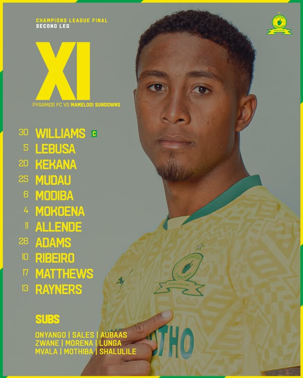 وعلى الجانب الآخر أعلن ميجيل كاردوزا المدير الفني لنادي صن داونز عن تشكيل فريقه الرسمي ويبحث عن الانتصار من أجل التتويج باللقب، وكانت مباراة الذهاب قد انتهت بالتعادل الإيجابي بهدف لكل فريق.