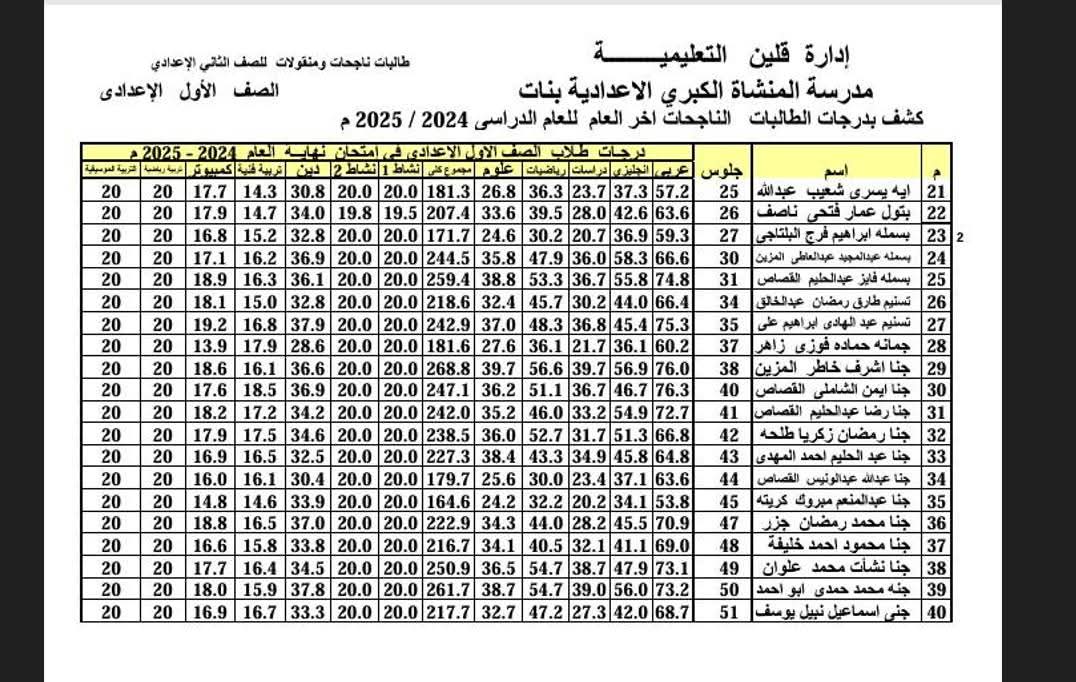 رابعا: ستظهر نتيجة الصفين الأول والثانى الإعدادي 2025 مع درجات الطالب في جميع المواد الدراسية فور اعتمادها رسميًا.
