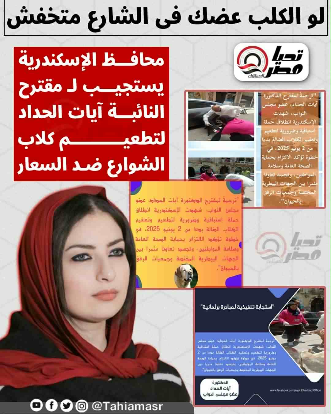 «لو الكلب عضك في الشارع متخفش».. محافظ الإسكندرية يستجيب لمقترح النائبة آيات الحداد لتطعيم كلاب الشوارع ضد السعار