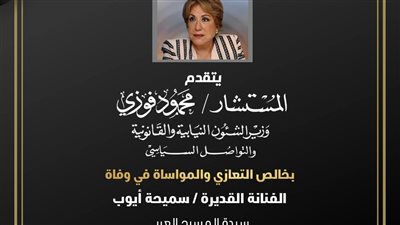 نعي الفنان شريف منير، سيدة المسرح العربي سميحة أيوب بكلمات مؤثرة، راويا مواقف كانت فيها مصدر دعم وسند له رغم أنهم لم يشاركوا معا سوى في مسلسل واحد فقط وهو مسلسل إجازة مفتوحة والذي كان السبب في معرفته بها.