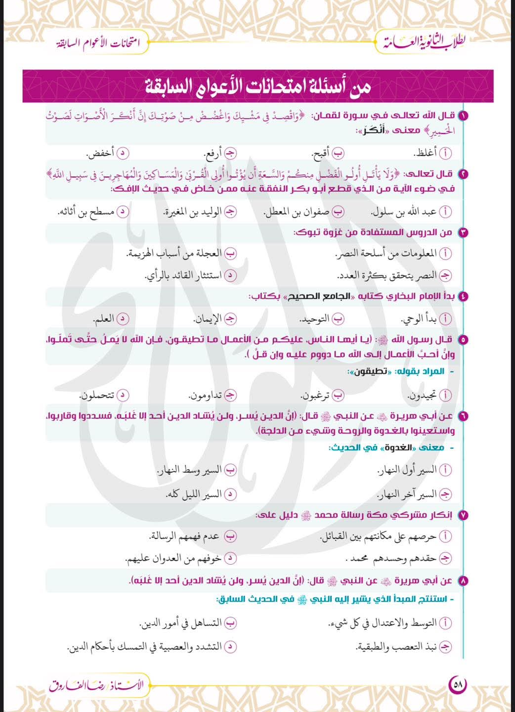 مراجعة التربية الدينية للثانوية العامة 2025 ليلة الامتحان