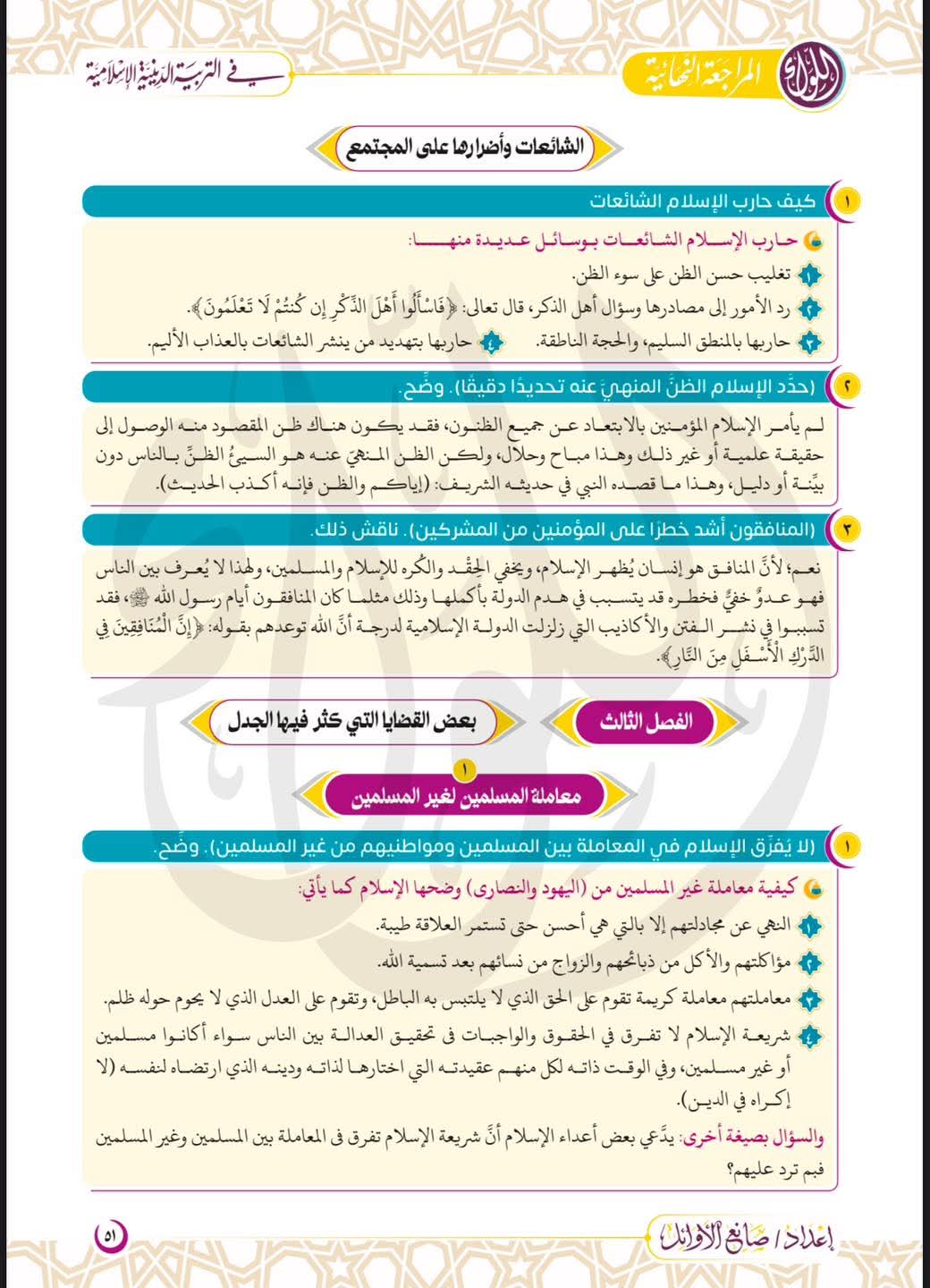 وشملت مراجعة التربية الدينية للثانوية العامة 2025 ليلة الامتحان كالآتى: