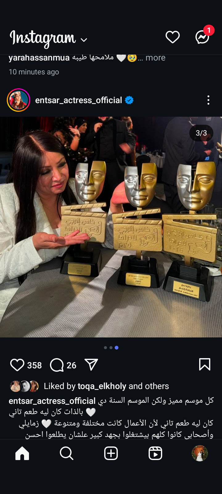 نشرت انتصار مجموعة صور لها من تكريمها من انرجي وذلك في منشور رصده موقع تحيا مصر عبر حسابها الرسمي بموقع تبادل الصور والفيديوهات انستجرام، وعلقت عليها، قائلة: كل موسم مميز ولكن الموسم السنة دي بالذات كان ليه طعم تاني ، كان ليه طعم تاني لأن الأعمال كانت مختلفة ومتنوعة.. زمايلي وأصحابي كانوا كلهم بيشتغلوا بجهد كبير علشان يطلعوا احسن حاجة عندهم واكيد التوفيق كله من عند ربنا.. الحمدلله علي كل شيء وان شاء الله نعيش ونقدملكم أعمال اقوي واقوي.