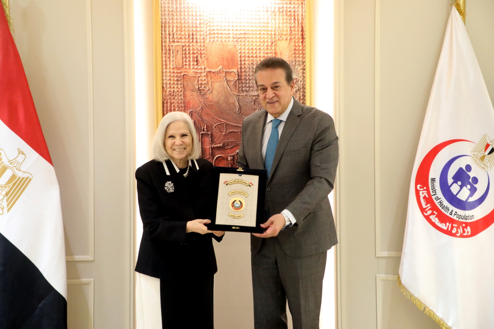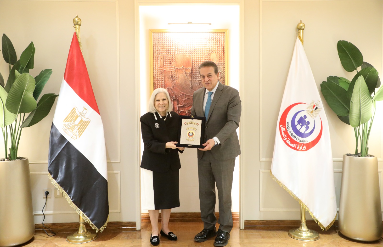 وزير الصحة والسكان يُكرم السفيرة هيفاء ابو غزالة تقديرًا لجهودها خلال فترة ولايتها