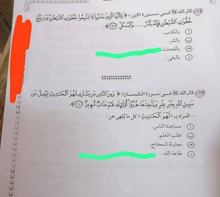تداولت جروبات الغش لشاومينج أسئلة وإجابة امتحان الدين للثانوية العامة 2025 على جروبات التليجرام بعد مرور دقائق من بدء اللجان.