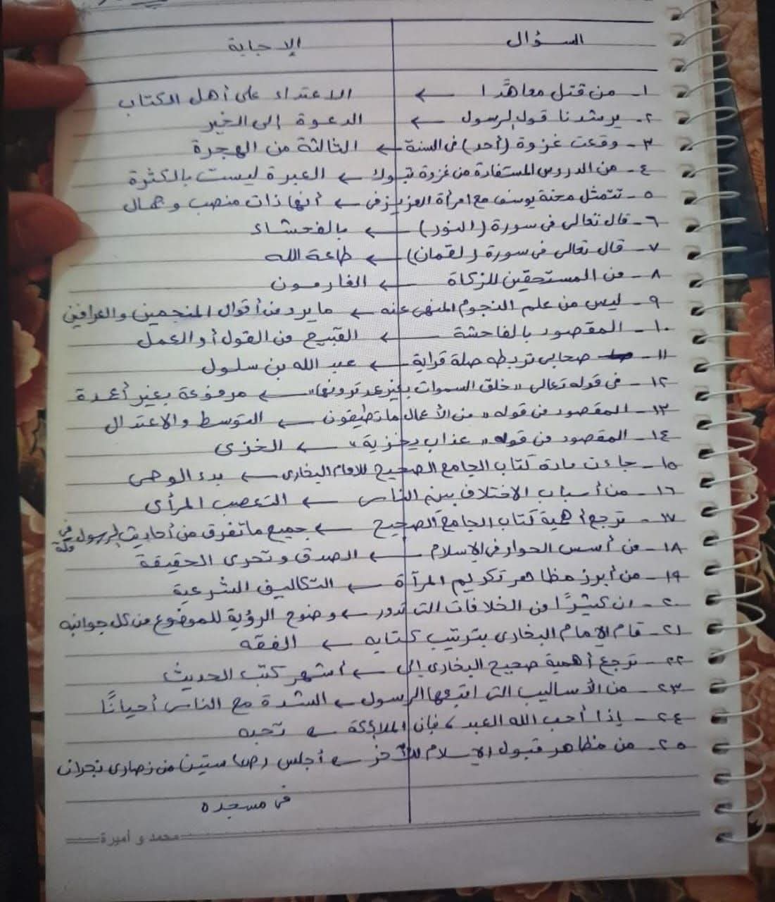 وجاءت إجابة امتحان الدين للثانوية العامة 2025 كالاتى: