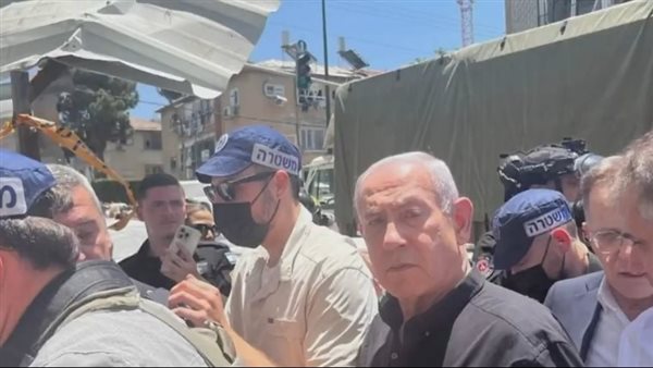 ووثقت عدسات الكاميرات، لحظة وصول نتنياهو إلى موقع الهجوم، وتبدو علي وجهه معالم الصدمة من حجم الكارثة التي شهدتها المدينة.