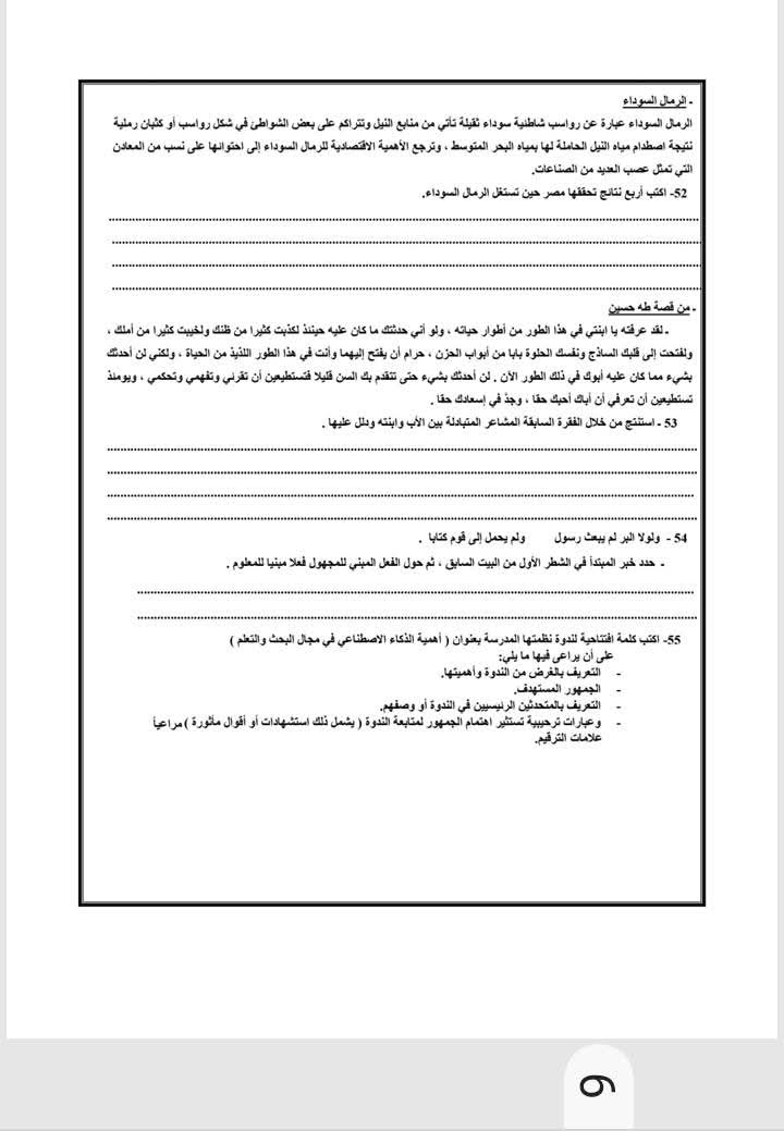 - امتحان اللغة العربية للثانوية العامة