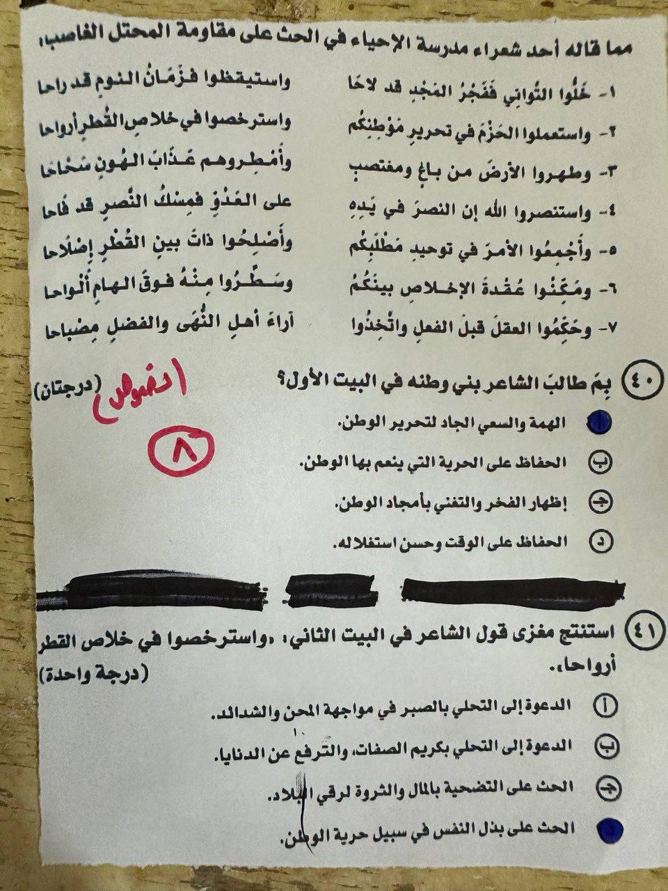 - امتحان اللغة العربية اليوم
