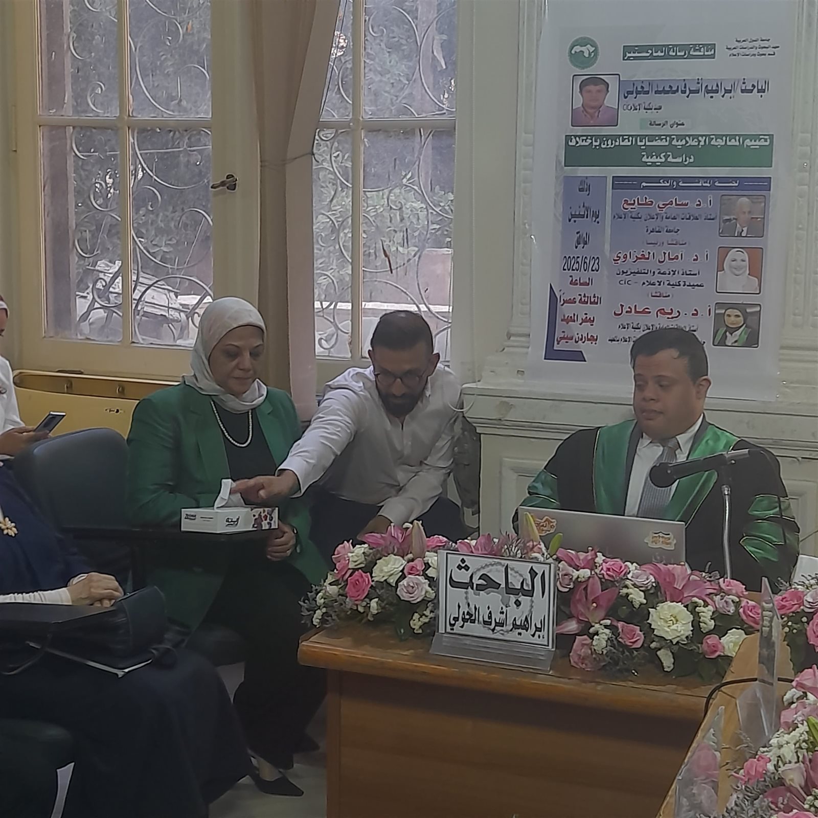 شهدت المناقشة حضور عدد من كبار أساتذة كلية الإعلام بجامعة القاهرة، الذين عبروا عن فخرهم بهذا النموذج الملهم، وفي مقدمتهم: