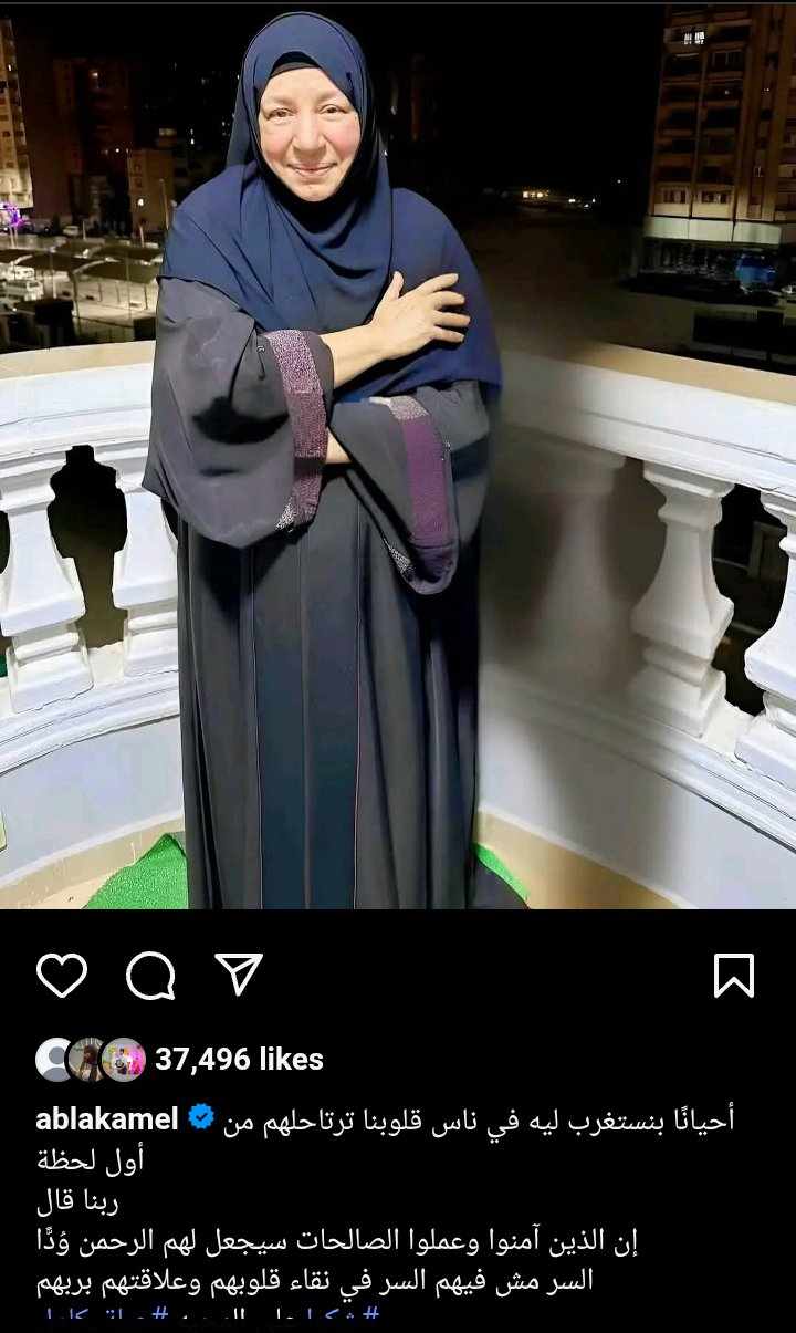 جاء منشور عبلة كامل المثير للجدل عبر حسابها الرسمي بموقع تبادل الصور والفيديوهات انستجرام بنفس الصورة التي انتشرت لها مؤخرا على الساحة، وكتب عليها تعليق رصده موقع تحيا مصر منذ قليل، جاء به: أحيانًا بنستغرب ليه في ناس قلوبنا ترتاحلهم من أول لحظة ربنا قال إن الذين آمنوا وعملوا الصالحات سيجعل لهم الرحمن وُدًّا.. السر مش فيهم السر في نقاء قلوبهم وعلاقتهم بربهم.. شكرا علي المحبة.