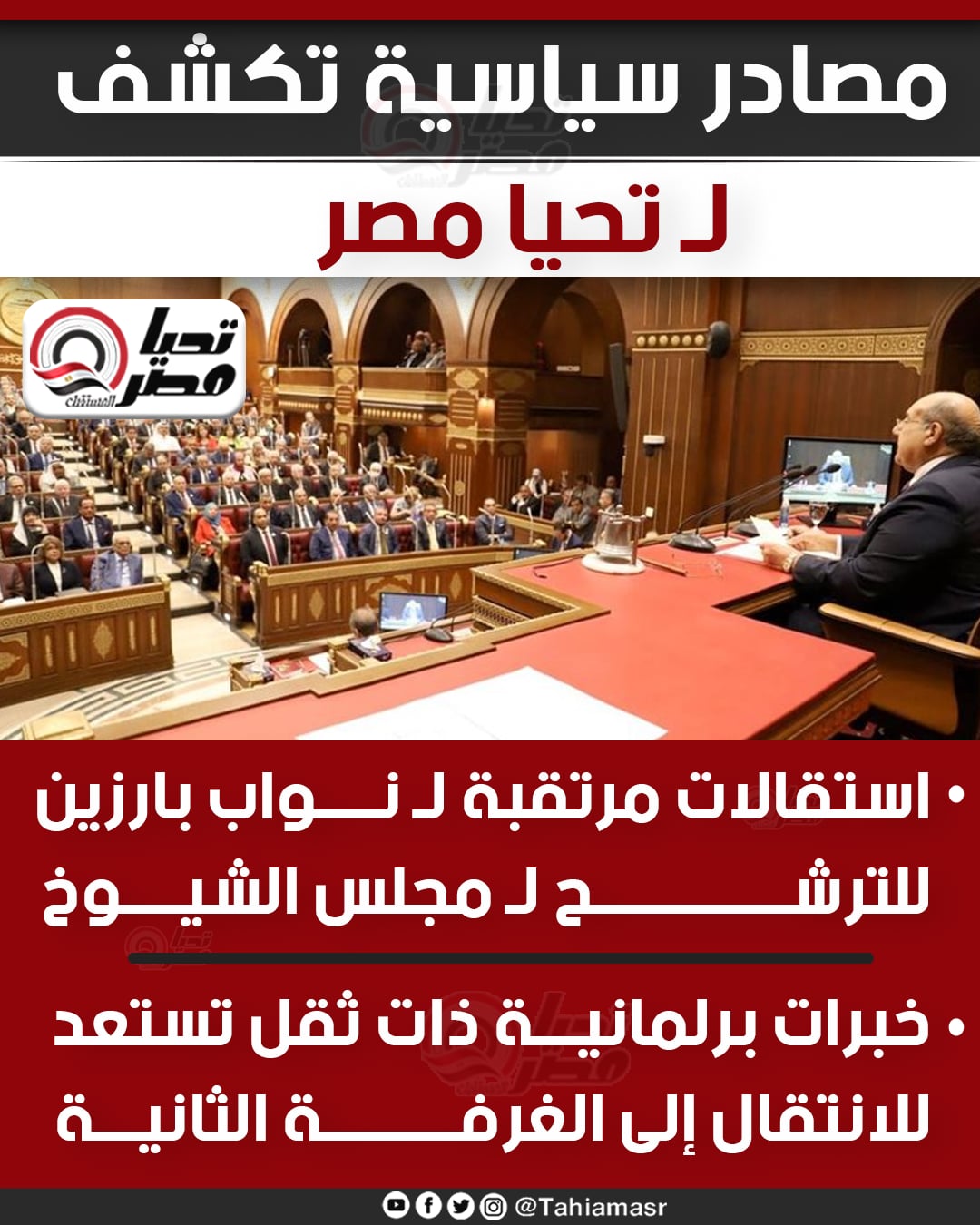 وفي تطور لافت كشفت مصادر سياسية رفيعة لموقع تحيا مصر عن تفاصيل دقيقة تتعلق بنواب حاليين داخل مجلس النواب، حيث أكدت أن هناك ثلاثة نواب من أصحاب الأسماء البارزة داخل الحياة البرلمانية قرروا التقدم باستقالاتهم مع نهاية الدورة الحالية، تمهيدًا للترشح في انتخابات مجلس الشيوخ المقبل، وذلك في إطار رؤية سياسية تهدف إلى نقل خبراتهم الطويلة إلى الغرفة الثانية من غرفتي البرلمان.