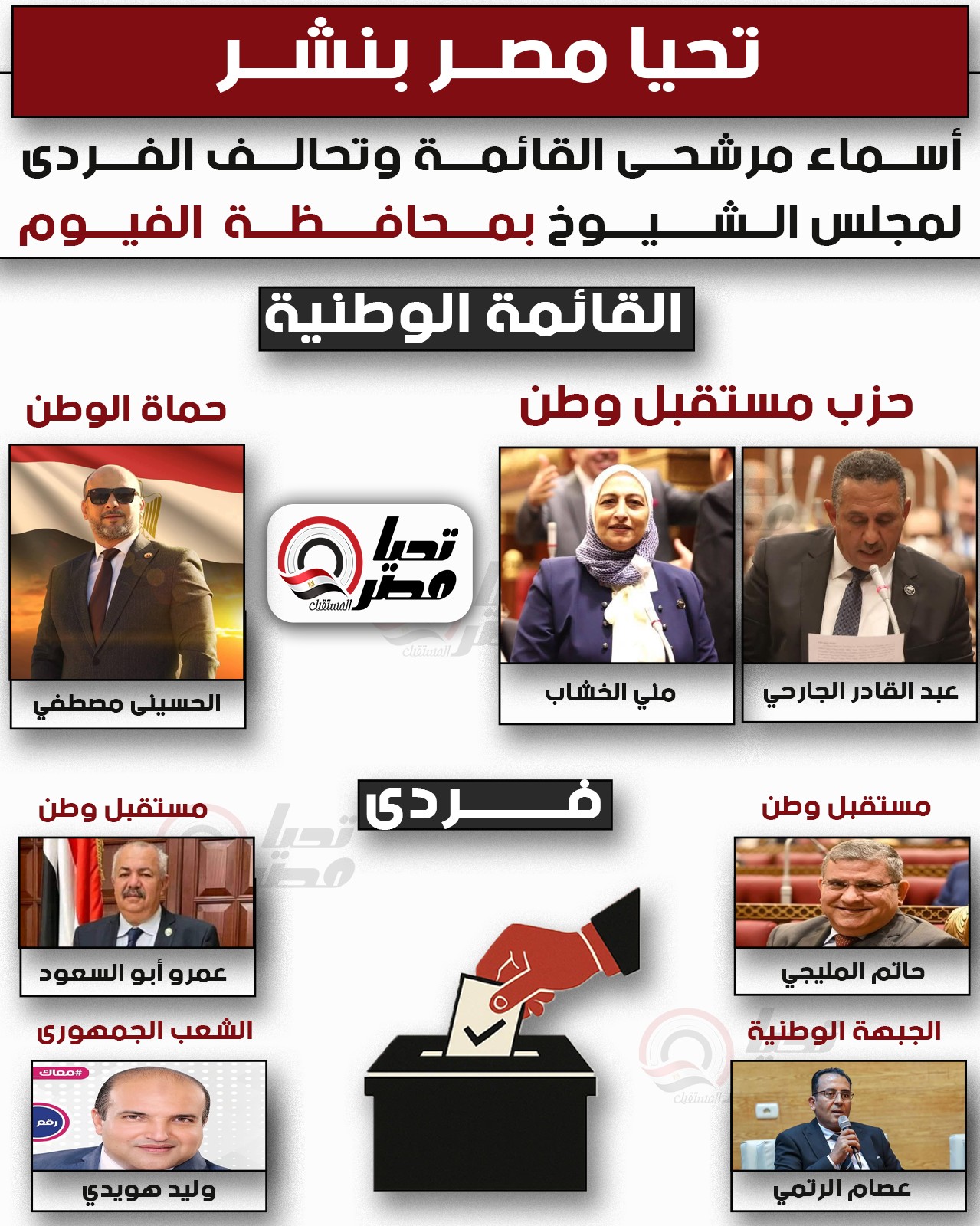 خاص تحيا مصر.. المرشحون للأحزاب في انتخابات مجلس الشيوخ بالفيوم 2025 (قائمة وفردي)