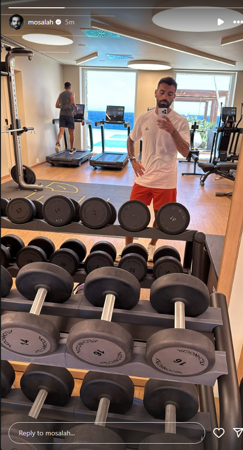 تحيا مصر، ونشر محمد صلاح صورة له عبر حسابه الرسمي" إنستجرام"، وهو داخل الجيم يخوض تدريبات تأهليلية استعداداً للموسم الكروري الجديد.
