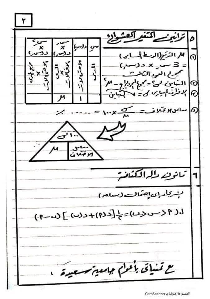 وجاءت مراجعة ليلة الامتحان فى مادة الإحصاء لطلاب الشعبة الأدبية كالاتى: