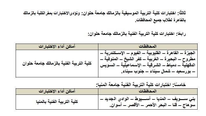 ورصد موقع تحيا مصر قائمة بأسماء الكليات التي يشترط القبول بها اجتياز اختبارات القدرات وهي:-
