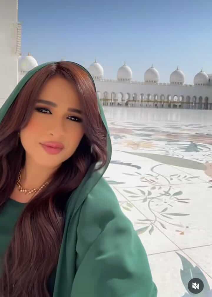 ظهرت ياسمين عبد العزيز في الفيديو الذي رصده موقع تحيا مصر عبر حسابها الرسمي بموقع تبادل الصور والفيديوهات انستجرام، بغطاء على الرأس باللون الزيتي وعباية زيتي مع ترك شعرها منسابا تحت هذا الغطاء، وذلك من داخل مسجد الشيخ زايد.