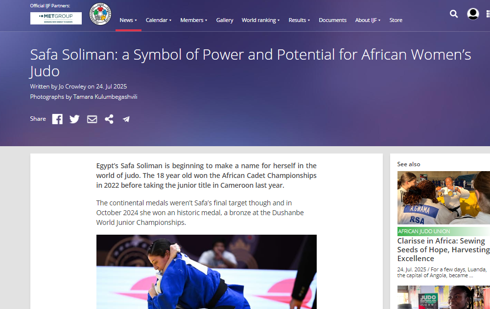 الاتحاد الدولي للجودو يسلط الضوء على صفاء سليمان.. أيقونة جديدة في سماء الجودو الأفريقي