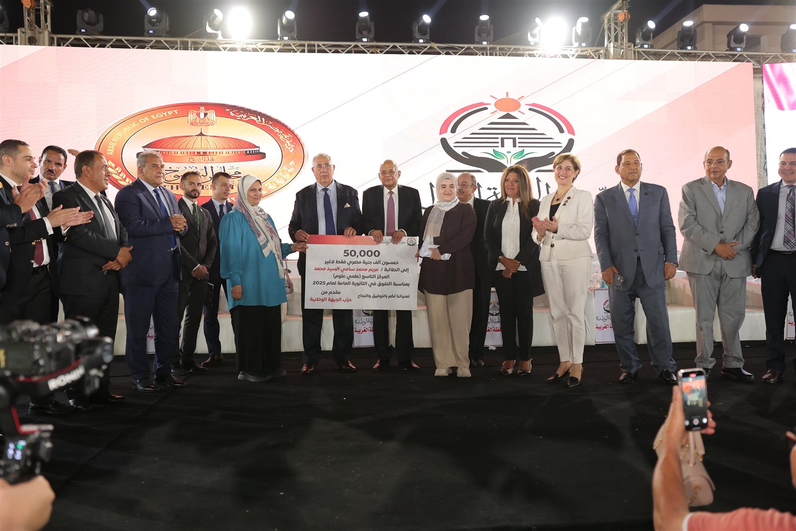 وقدّم الحزب للطالبة منحة دراسية كاملة في الجهة التي تختارها، إلى جانب مكافأة مالية قدرها 50 ألف جنيه، دعمًا لمسيرتها العلمية وتحفيزًا لها على مواصلة التميز.