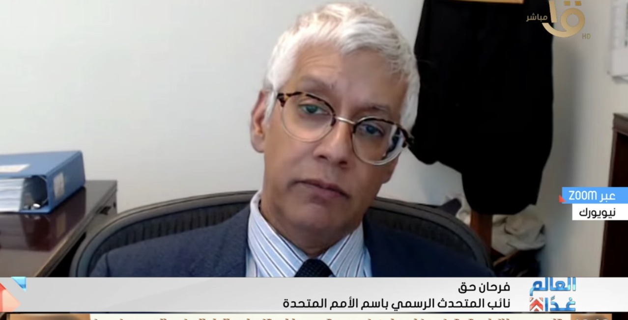 وحول موقف الأمم المتحدة من الإجراءات الأحادية التي تتخذها إسرائيل، قال فرحان حق إن الجميع ملزم بقرارات وأوامر الأمم المتحدة، وإسرائيل، بصفتها قوة احتلال، مطالبة باحترام وتنفيذ القانون الدولي.