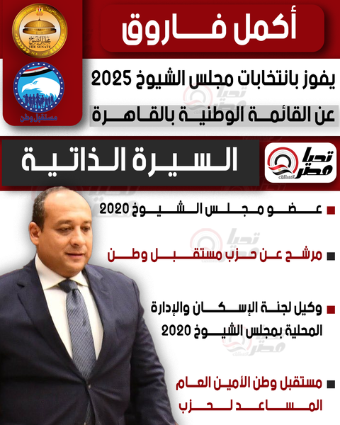 تحيا مصر ينشر السيرة الذاتية للنائب أكمل فاروق عضو مجلس الشيوخ 2025