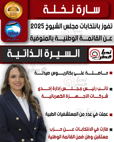 سارة نخلة تفوز بانتخابات مجلس الشيوخ 2025 عن القائمة الوطنية بمحافظة المنوفية