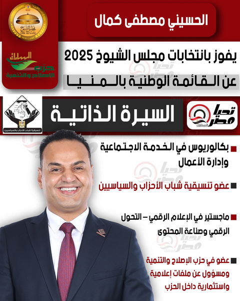 تحيا مصر ينشر السيرة الذاتية للنائب الحسيني مصطفى كمال عضو مجلس الشيوخ 2025