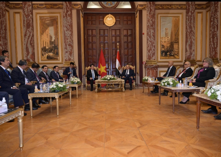 وأكد الرئيس الفيتنامي اهتمام بلاده بتعزيز علاقاتها مع مصر، باعتبارهما شريكين مهمين في محيطهما الإقليمي والدولي، مشيرًا إلى الاتفاق مع الرئيس عبد الفتاح السيسي على ترفيع العلاقات إلى مستوى الشراكة الشاملة القائمة على التعاون المشترك في شتى المجالات.
