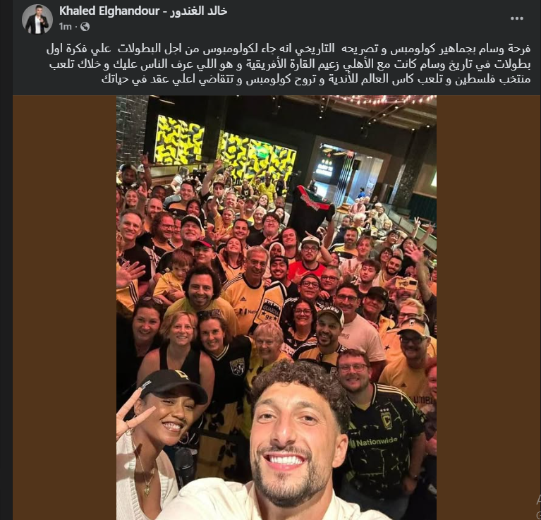 تحيا مصر، وكتب خالد الغندور عبر حسابه الرسمي"فيس بوك": فرحة وسام بجماهير كولومبوس، وتصريحه التاريخي إنه جاء لكولومبوس من أجل البطولات".