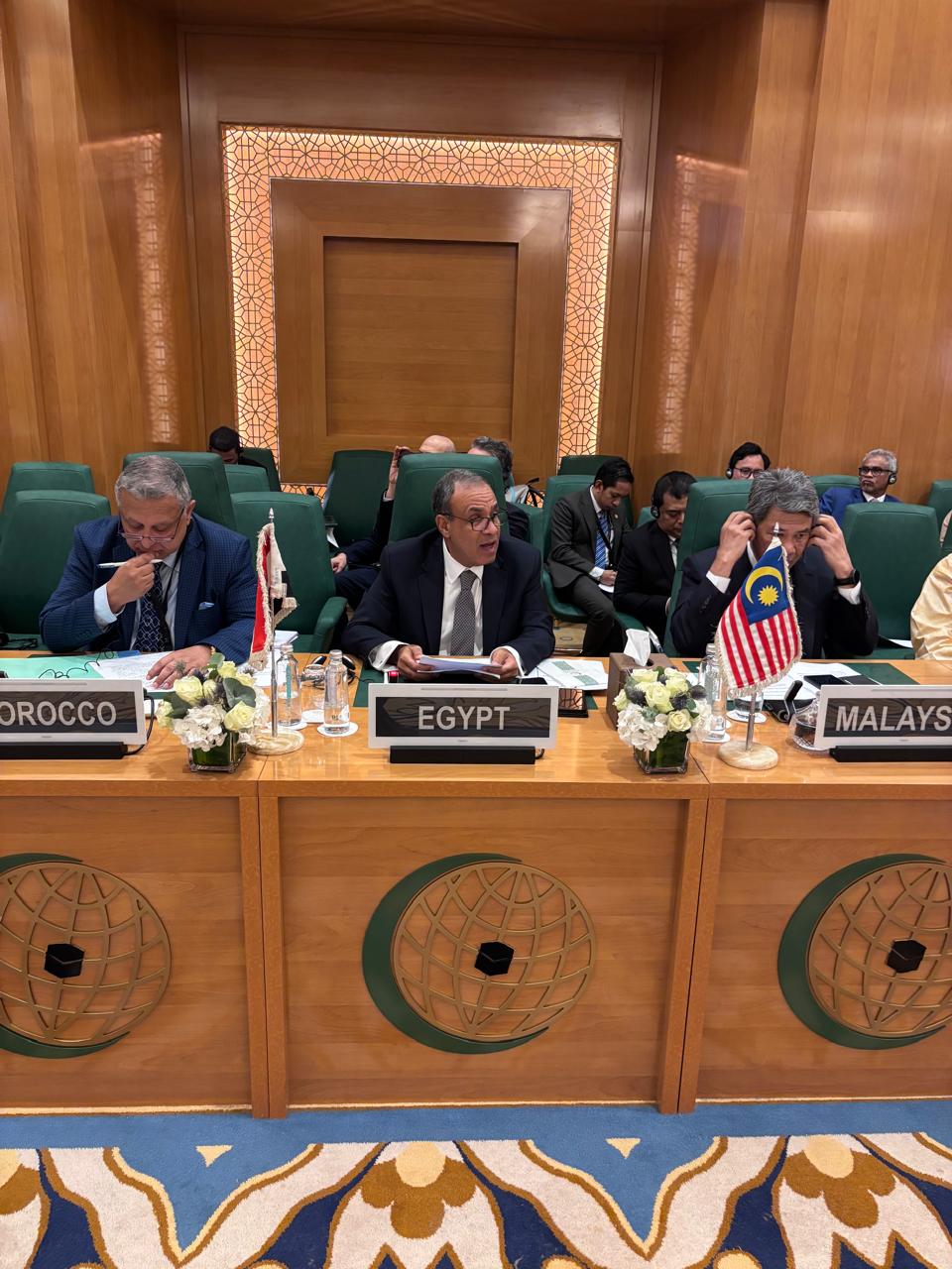 أشار الوزير عبد العاطي في كلمته إلى استمرار إسرائيل في انتهاكاتها السافرة والممنهجة وارتكابها الجرائم والإبادة الجماعية ضد شعب أعزل، واستهانتها بكافة القوانين والأعراف الدولية من خلال مواصلة وتوسيع عدوانها على قطاع غزة، واستخدام التجويع والحصار وعرقلة عمل المؤسسات الأممية للنيل من صمود وبسالة الشعب الفلسطيني في غزة ودفعه للقبول بخيار التهجير تمهيداً لتصفية القضية الفلسطينية، وهو ما ترفضه مصر بشكل قاطع. واستعرض جهود مصر لدعم الشعب الفلسطيني في قطاع غزة، حيث ساهمت بما يقرب من 70% من تلك المساعدات منذ بداية الأزمة بإجمالي 550 ألف طن، واستقبلت الآلاف من المصابين الفلسطينيين ومرافقيهم لتلقي الرعاية الصحية بالمستشفيات المصرية، مشدداً على ضرورة تسهيل الجانب الإسرائيلي دخول المساعدات بشكل فوري من خلال كافة المعابر دون أية عوائق أو قيود، حيث يحتاج القطاع لما لا يقل عن 700 شاحنة يومياً لتلبية الاحتياجات المتزايدة لسكان القطاع، وفي ظل وجود أكثر من 5000 شاحنة محملة بالمساعدات على الجانب المصري، إلا أن دخولها يواجه العديد من العراقيل من الجانب الإسرائيلي، بما يحول دون تدفقها للقطاع.