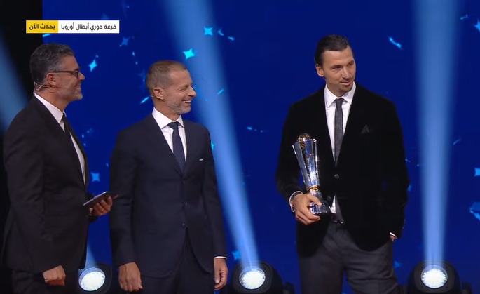 السويدي زلاتان إبراهيموفيتش يتسلم جائزة رئيس الاتحاد الأوروبي قبل قرعة دوري أبطال أوروبا