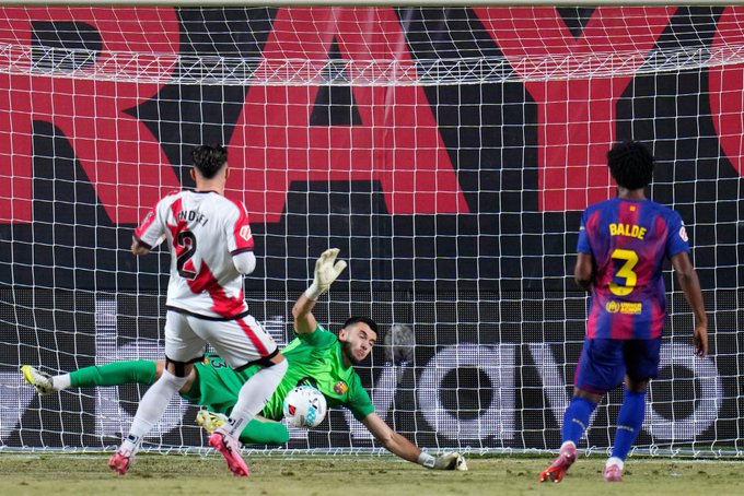 وفي الدقيقة 40 حصل برشلونة على ركلة جزاء وسجلها لامين يامال بنجاح، وينتهي الشوط الأول بين برشلونة ورايو فاليكانو في الدوري الإسباني بالتعادل الإيجابي بهدف لكل فريق.