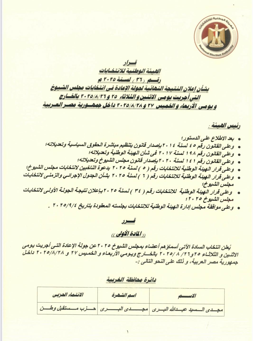 النتيجة الرسمية لجولة الإعادة لانتخابات مجلس الشيوخ 2025..صور