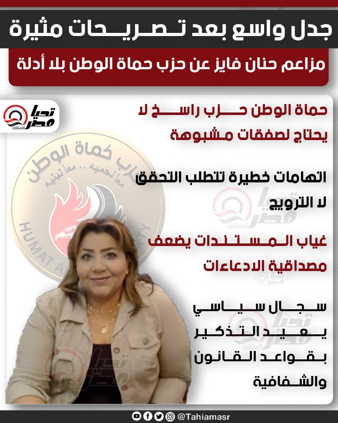 جدل واسع بعد تصريحات مثيرة.. مزاعم حنان فايز عن حزب حماة الوطن بلا أدلة