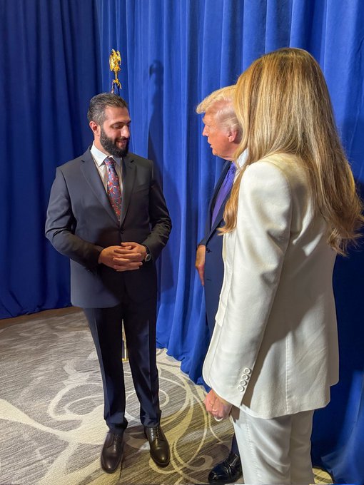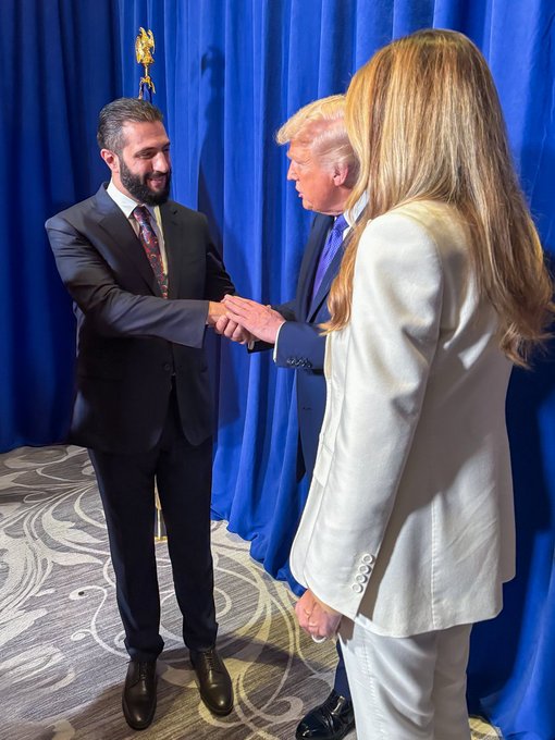 ونشرت الرئاسة السورية، على صفحتها الرسمية عبر منصة "إكس"، عن اللقاء وكتبت:" التقى أحمد الشرع، رئيس الجمهورية العربية السورية، مع رئيس الولايات المتحدة الأمريكية، دونالد ترامب، خلال حفل الاستقبال الذي أقامه الرئيس الأمريكي على هامش أعمال الدورة الثمانين للجمعية العامة للأمم المتحدة في نيويورك، وذلك بحضور ميلانيا ترامب"، وارفقت المنشور بصور من اللقاء.