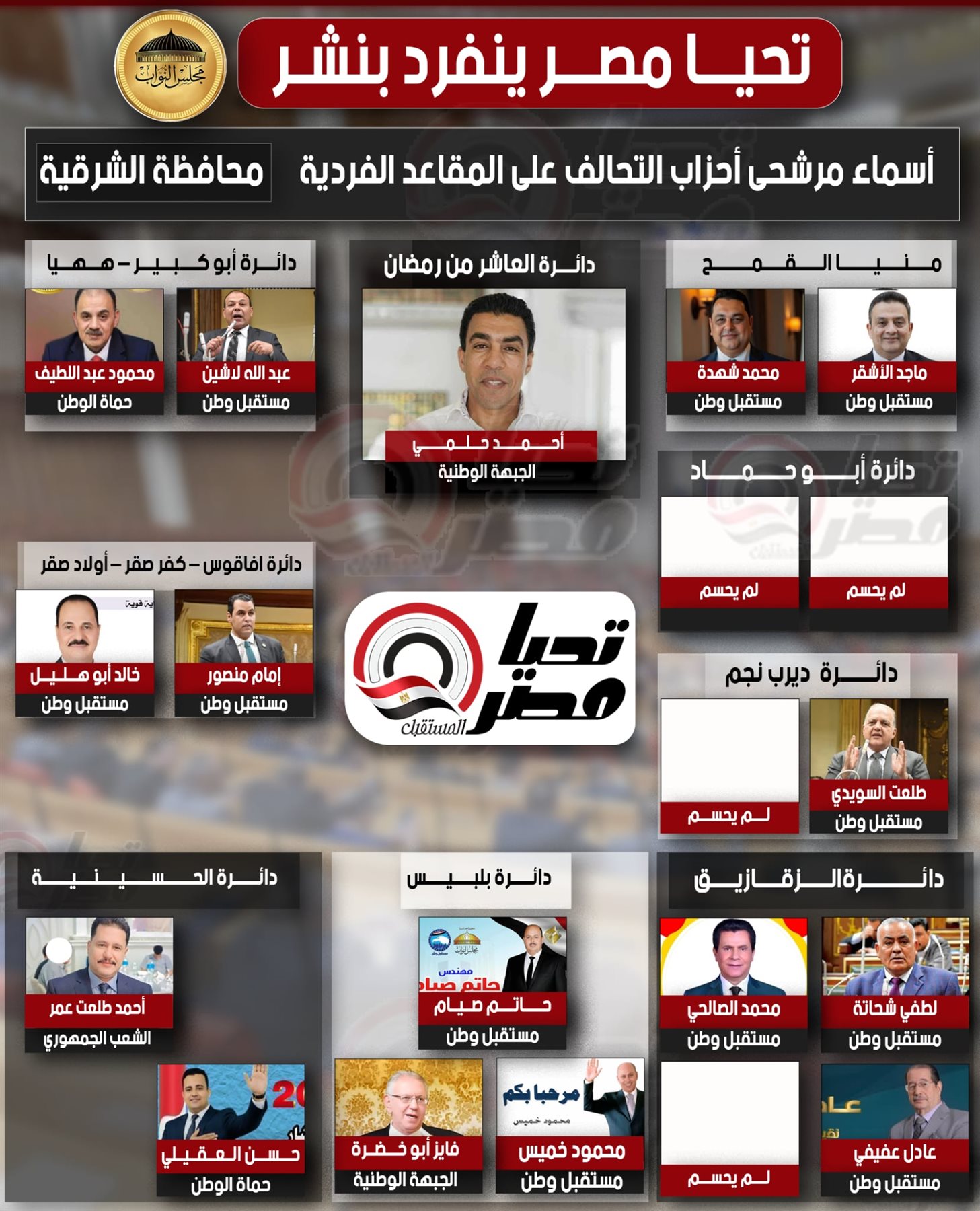 تحيا مصر ينفرد بنشر أبزر مرشحي الفردي لانتخابات النواب 2025 بالشرقية