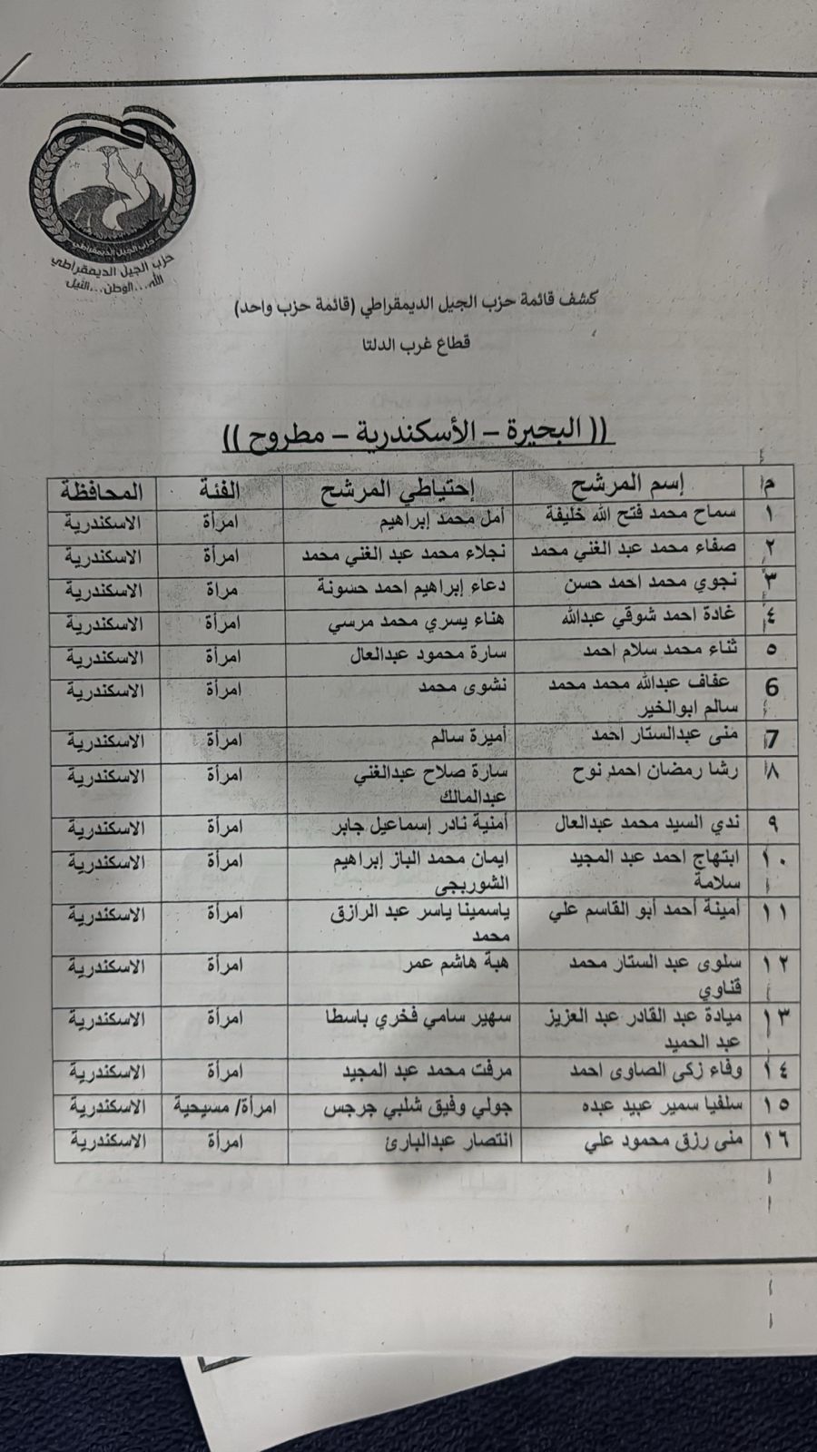 كما تقدم الحزب بقائمة أخرى ضمت ٨٠ مرشحا من الحزب ايضاً على مستوى قطاع قطاع غرب الدلتا الذي يضم المحافظات اسكندرية و البحيرة ومرسى مطروح.