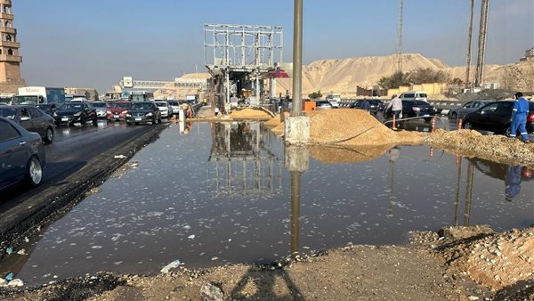 كسر ماسورة مياه يعطل الطريق الدائري بالأوتوستراد في الاتجاهين.. وجهود مكثفة لإعادة الحركة
