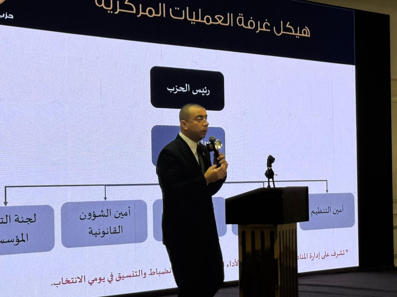 واستعرض الدكتور أحمد العطيفي، الأمين العام المساعد لحزب حماة الوطن، أمين التنظيم، التطور الذي شهده الحزب من حيث موقعه بين الأحزاب السياسية الممثلة داخل مجلسي النواب والشيوخ منذ نشأته.