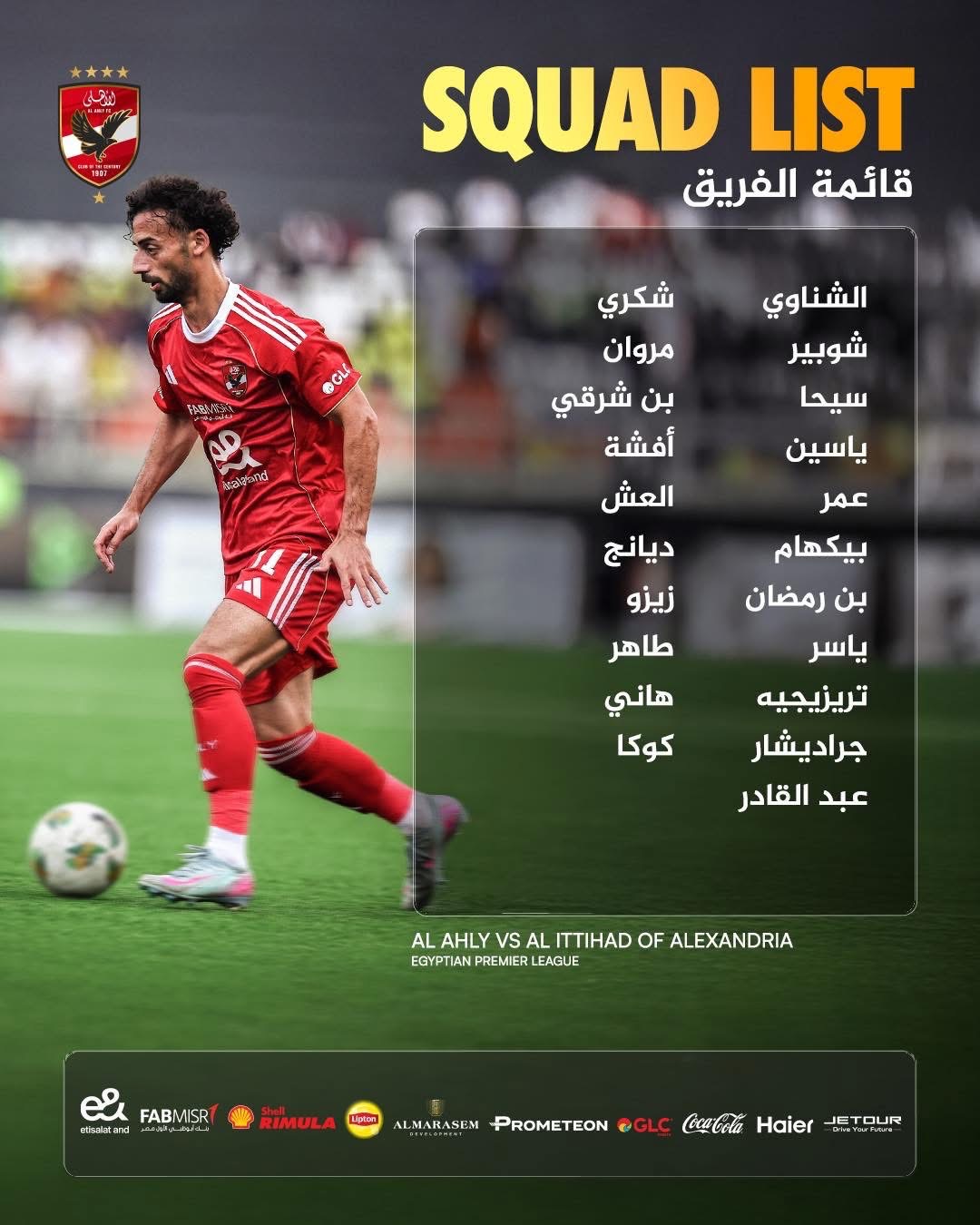 قائمة الأهلي لمباراة الاتحاد السكندري