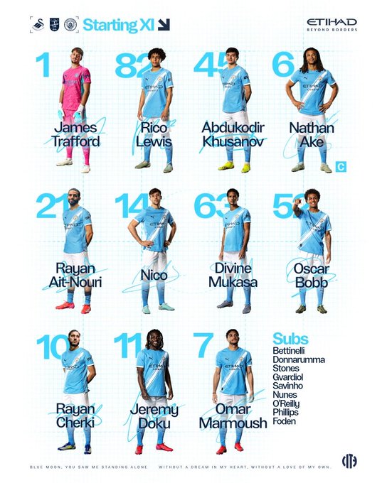 تشكيل مانشستر سيتي الرسمي ضد سوانزي سيتي في كأس رابطة المحترفين الإنجليزية.. موقف عمر مرموش