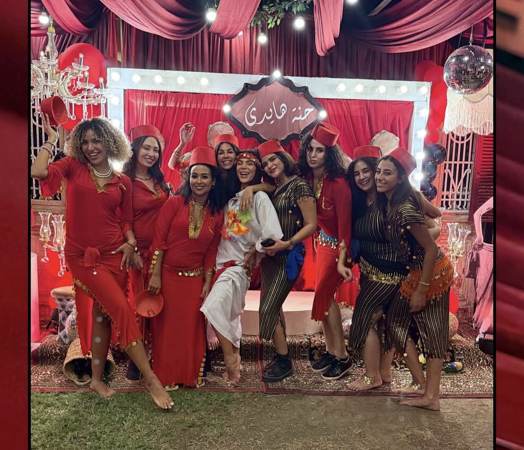بالطرابيش وبدل الرقص.. هادي الباجوري وزوجته هايدي يحتفلان بالحنة في الجونة