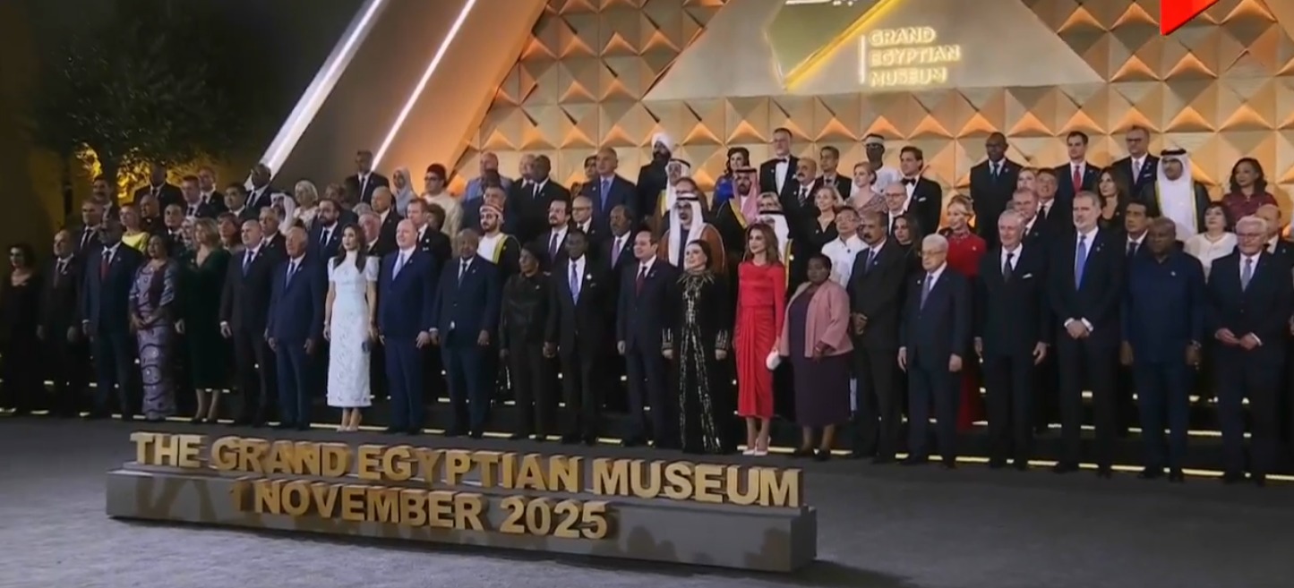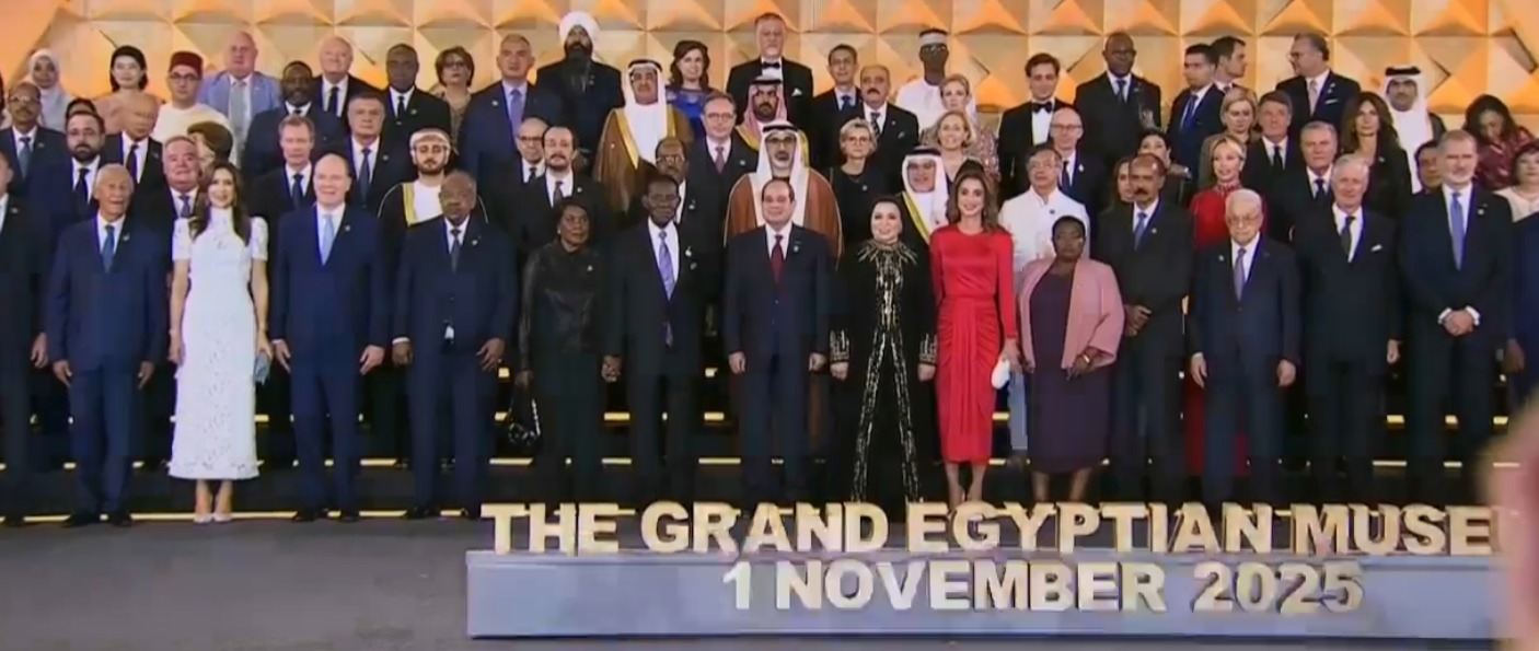 التقت زعماء ورؤساء ووفود العالم صورة تذكارية مع الرئيس السيسي، خلال حفل افتتاح المتحف المصري الكبير.