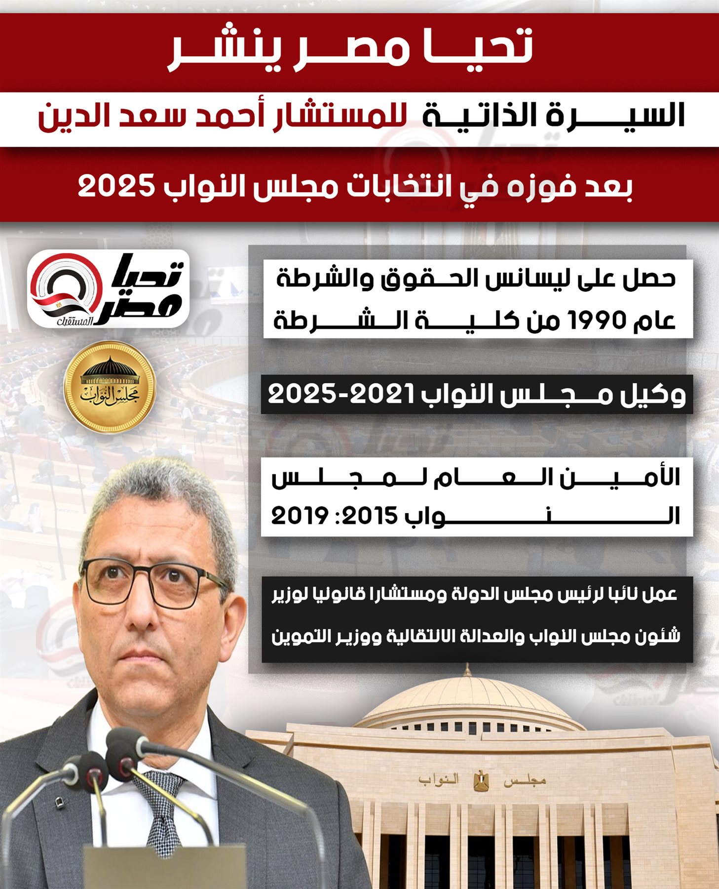تحيا مصر ينشر السيرة الذاتية لـ المستشار أحمد سعد الدين بعد فوزه في انتخابات مجلس النواب 2025