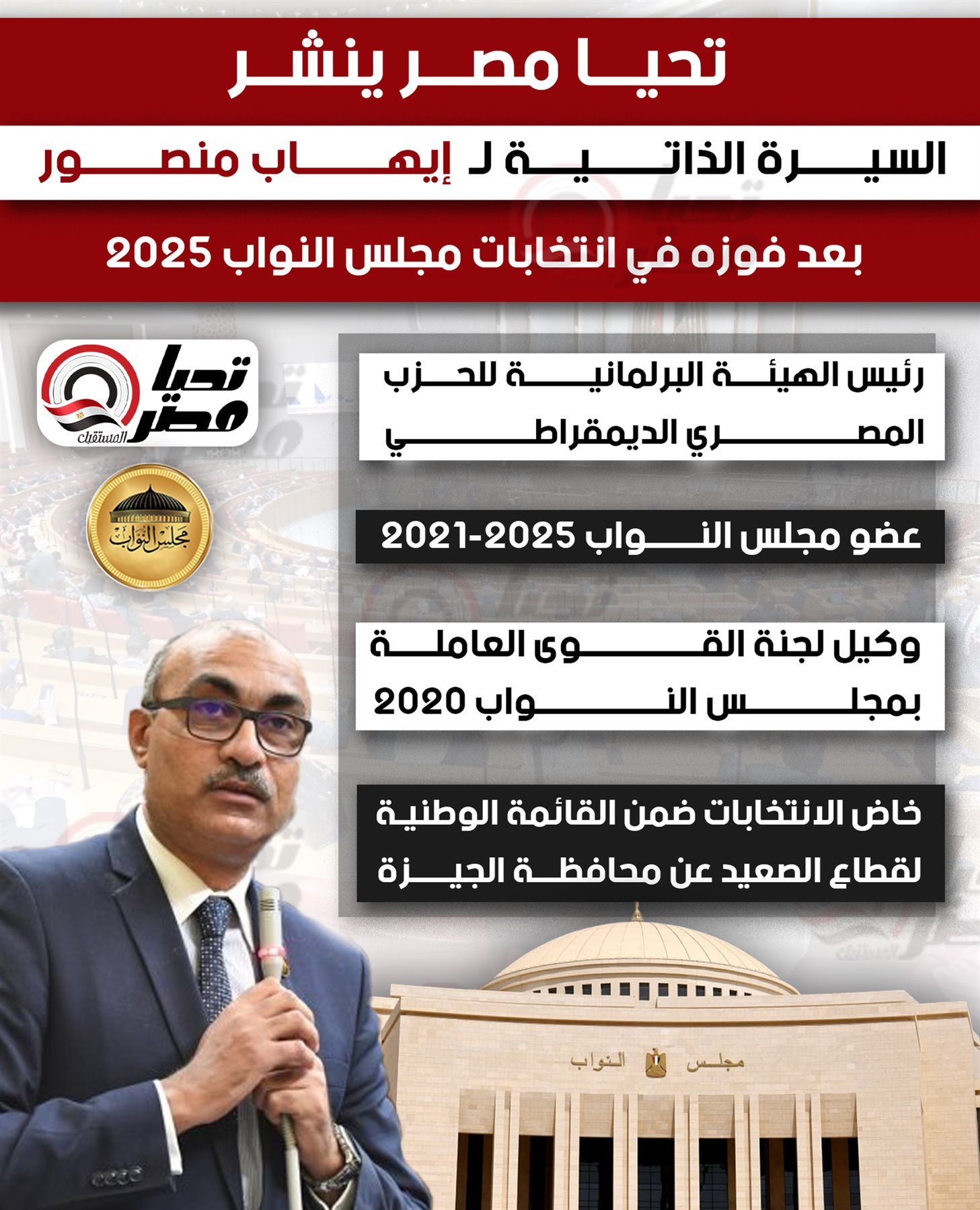 ينشر تحيا مصر السيرة الذاتية لـ إيهاب منصور بعد فوزه في انتخابات مجلس النواب 2025.